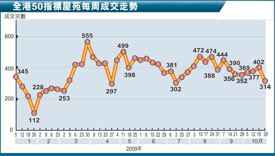 全港50指標屋苑每周成交走勢 (圖)