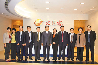 天津市人民政府外事辦主任田貴明(中)一行昨訪本報,受到本報董事副社長韓力(右五),副總經理原傑(左五)等的熱情接待。