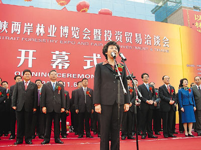 ■全國人大常委會副委員長嚴雋琪宣佈第5屆林博會開幕。 本報記者蘇榕蓉 攝