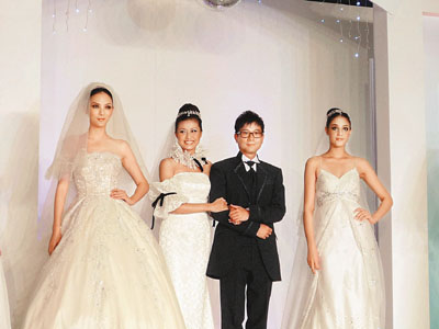 【本報訊】(記者 李慶全)陳國邦與羅敏莊這對準新人昨日於會展擔任婚紗代言行騷,演繹了多款婚紗和晚裝,兩人行騷時甚有默契,羅敏莊不時做出鬼馬表情和甫士,還親密地接吻,幸福滿瀉全場。