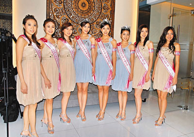 【本報廣東新聞中心記者李望賢深圳7日電】八名新鮮出爐的亞洲小姐當選佳麗,今日赴纖體機構必瘦站的深圳分店進行巡迴活動,一行人到達現場就謀殺不少菲林,吸引了商場眾人注目。冠軍許瑩(右4)祖籍安徽,不過長住深圳,據聞是party名媛名單首位。她指自己喜歡嘗試各種不同的東西,拿獎之後希望可以唱歌和演戲。她又爆自己最喜歡追求時尚,喜歡「血拼」買衣服和各種美容用品,不過一般都會量力而為,不至於「碌爆卡」。