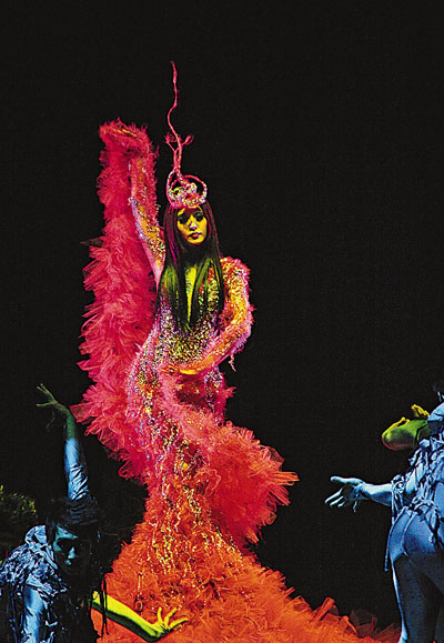 【本報北京新聞中心記者時尚宇7日電】內地知名時裝設計師郭培,日前在北京舉行了「一千零二夜」服裝發佈會。除了有眾多名媛和演藝界的朋友前來助陣,還邀請了范冰冰擔任開場嘉賓。身穿一件嵌有亮片華麗紅裙的范冰冰以一身「鬼魅」造型亮相,並大跳妖媚舞蹈,好似火浴女神下凡一般。郭培時裝發布會可謂大牌眾多,不僅有名模呂燕到場行騷,更有78歲的美國名模卡門前來助陣。郭培表示,這場發佈會她已籌備了兩年,現在終於能夠展現給大家十分開心。