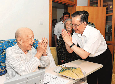 溫總理動情地回憶起與錢老長談如何建設中國的生態文明,探討能否開發地球深處能源等問題。在錢學森晚年,教育則是他們最主要的話題。溫總理動情地說,「今年8月,儘管錢老說話已很不清楚,由於我們交往時間久了,他的每一句話我都能聽懂,我還給他當『翻譯』……」 ■中新社