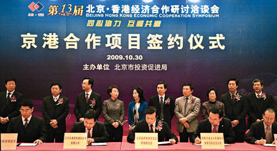日前,第十三屆北京.香港經濟合作研討洽談會舉辦了京港合作項目簽約儀式,北京經濟技術開發區與高登國際(香港)投資有限公司中國總部項目、寶健(中國)日用品有限公司增資項目等10個項目集中簽約,吸引投資總額高達27億元人民幣,成為本屆京港洽談會的大贏家。