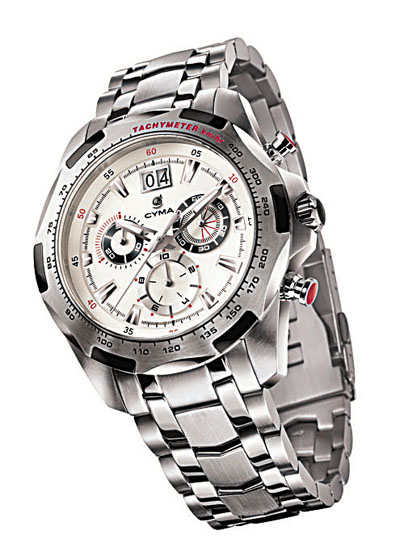 這款型號為02-0539-002的展露時尚動感的精鋼計時腕錶,在混合亮面與啞面精鋼的錶身上,擁有圓渾的啞面錶圈並設有視距儀裝置,環繞錶圈周邊的六枚黑色精鋼長形綴飾及光亮的弧形,為腕錶增添多重視覺效果。