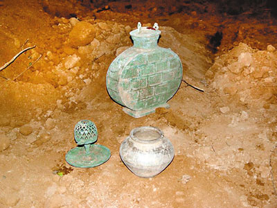 文物專家介紹,從出土的青銅器和陶罐推測,應為秦代末西漢初當地有一定社會地位的人的陪葬品。 ■中新社