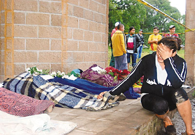 ■薩爾瓦多山泥傾瀉災難地點挖出數具屍體,一名女子撫屍痛哭。路透社