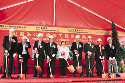 吐露港公路擴闊工程昨日舉行動工儀式,路政署署長韋志成於典禮致辭時表示,為應付未來新界東北部發展的交通需要和跨境交通增長,吐露港公路有需要進行擴闊工程,以符合最先進的道路設計和安全標準。該工程全長約5.7公里,由兩個工程合約組成,預計2013年竣工,施工期內可創造約1,200個職位。出席動工儀式的嘉賓還包括運輸及房屋局局長鄭汝樺及大埔區議會主席張學明等。