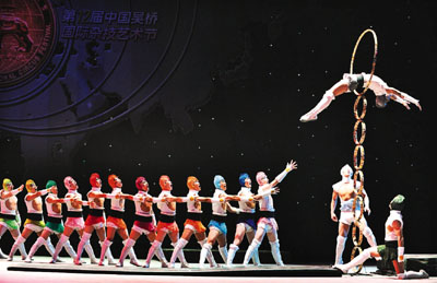 被譽為「東方雜技大賽場」的第十二屆中國吳橋國際雜技藝術節8日晚在石家莊舉行頒獎晚會,中國雜技團的《聖斗.地圈》與朝鮮平壤國家雜技團選送的《空中頂技》和《空中浪橋飛人》兩個高空項目捧得是項賽事最高獎「金獅獎」。