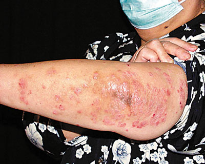 ■銀屑病常見於頭皮、手肘、膝蓋、腹部、背部、臀部及生殖器官。
