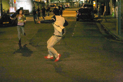 【本報訊】(記者 梁靜儀)林超賢執導的電影《線人》前晚在尖沙咀封街拍攝,當晚拍攝飾演爛賭婆的桂綸鎂在大檔賭錢後被追斬,碰上飾演積犯、同時正被幾個警察追捕的霆鋒,逃走中二人在路口相遇,現場除了有大批傳媒採訪外,還吸引不少途人圍觀,拍攝期間他們更拿出相機及手機拍攝。