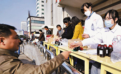 ■長沙昨日免費向的士司機發放預防甲流的中藥香囊和湯劑。新華社