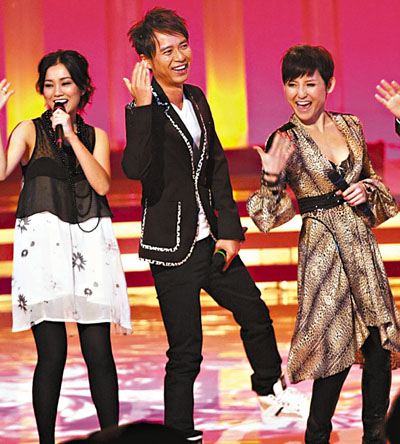 ■劉美君(右)衣著性感,身旁的克勤也不敢正視。