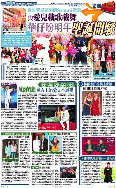 華仔在聖誕期間應該留港度過,問他有何慶祝活動,華仔笑笑口說:「我們又唔出得街,有咩牉`目x?去睇Sammi(鄭秀文)演唱會,(擔任嘉賓?)睇下佢請唔請我,想唔想我去囉。」問到華仔會否送聖誕禮物給家人,華仔表示甚少,過去的聖誕都是工作,通常都是跟工作人員交換禮物。