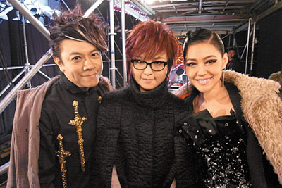 【本報訊】(記者 黃國強)日前,周筆暢(右圖中)出席了2009「康熙盛典」全國巡迴演唱會杭州站,來自內地、香港、台灣、澳門四地的數千名「筆親」齊舉代表著周筆暢的綠色燈牌,使得整個黃龍體育場都被「染綠」,儼然變成了「綠龍體育場」,令周筆暢非常感動:「雖然天氣很冷,但看到大家點亮的『綠光』,就會覺得很溫暖,渾身都充滿了力量。」康熙的主持人小S和蔡康永當然不會放過筆筆,小S出的第一個麻辣問題就把筆筆難倒,幸好有康永在一旁為她解圍,最後只要求筆筆模仿小S擺一個性感的Pose就能過關。於是在小S的示範下,筆筆破天荒地擺出了小S招牌式的S形姿勢,這一充滿「女人味」的破格表演更是激起了台下的尖叫連連。