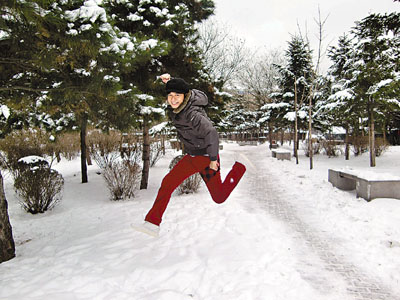 【本報訊】(記者 植植)古巨基近日馬不停蹄,兩日內到了四個中國城市。古巨基日前於廣州出席活動,翌日便現身重慶國際會展中心,為「香港時尚購物展」作宣傳。他原定即日再啟程到瀋陽出席宣傳活動,但遇上當地大風雪,瀋陽機場一度關閉,基仔便只好滯留在機場,並改為凌晨時分才上機前往瀋陽,於早上五時到達後便要準備上午九時現場唱歌。完成瀋陽的活動後,基仔又要即時再赴東莞,出席晚間的演出活動。但因天氣惡劣的關係,基仔再度滯留在機場,他便趁短暫的空檔到雪地上拍照留念。