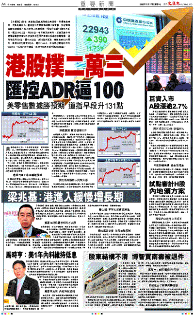 ¡@¡i¥»³ø°T¡j(°OªÌ ©P²Ð°ò)¬ü°êÁ`²Î¶ø¤Ú°¨³XµØ¡A¥«³õ®ðª^ºZ©ô¡A¤×¨ä¬O¶Ç¥X¤H¦æ³ø§i¹ï¤H¥Á¹ô¶×²vªº½Õ¤l¦³ÅܰʡA¤Þµo¼ê´ûªº°ê»Ú¼ö¿ú´é¤J´ä¤¸ª£§@¤H¥Á¹ô¤ÉÈ¡AùÚ«ü¤É¦Üªñ15Ó¥b¤ë·s°ª¡A³ø22,943.9ÂI¡A¤É390ÂI¡C¨ì¬Q±ß¬üªÑ¶}¥«¡A¨ü¨ì¬ü°ê¤Q¤ë¹s°â¾P°â«ö¤ë¼W´T¤j©ó¹w´Á¤Î³q¥Î¨T¨®²Ä¤T©u·~ÁZ§ïµ½±a°Ê¡A¹D«ü¦¬q¤É131ÂI¡A³ø10,402ÂI¡A³Ð13Ó¤ë·s°ª¡A¨ë¿E´äªÑADR¦A¤É¡AúÀ±±(0005)¹Gªñ100¤¸¡A³ø99.144¤¸¡A§é¦X¨CªÑ¸û´ä¦¬¥«¤É2.044¤¸¡C¥HADRªº¤É¶Õ¬Ý¡A´äªÑ¤µ¤é¶}¥«±N¤É¶V23,000ÂI¡C