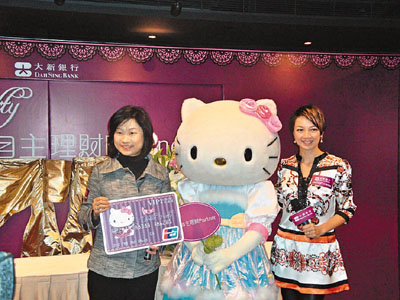 ¡@¤j·s»È¦æ±À¥X¡uHello Kitty VIP»È¦æªA°È¡v¡AY¦¨¥\¥Ó½Ð´N¦³¾÷·|Àò±oHello Kittyªï·s§«~Àu´f¡A¥B¥i¥Ã¤[ÁŧK¦~¶O¡C¸ÓªA°Èp¹º¤¤¡AY©w´Á¦s´Ú3Ó¤ë¥H¤W¡Bª÷ÃB¶W¹L10¸U¤¸¡A§Y¥i¨É¨ü1.02%ªº¦s´Ú¦~§Q²v¡F¦¨¥\§ë«O¡u¨q¼z¡v¤k©ÊÀx»W«O»Ùp¹º¡A¥i¨É¨ü1Ó¤ë§K¶O«O»Ù¡F·s¶}ÃÒ¨é¤á¤f¥i¨ÉºÓ¤ëºô¤WªÑ²¼¶R½æ¹s¦þª÷¤Î¨C¤ë1,000Ó§K¶Oºô¤WÃÒ¨éÂIÀ»³ø»ù¡C