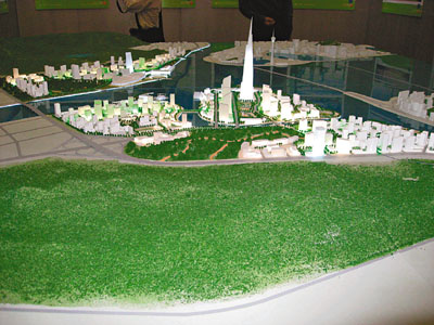 ■橫琴十字門商務區城市設計概念中標方案模型。本報記者李芳 攝