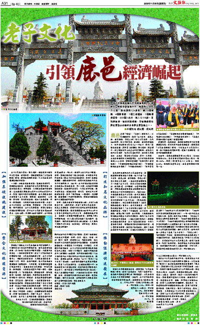 近幾年來,鹿邑縣委、縣政府始終堅持以科學發展觀為指導,依托特有的旅遊資源優勢,積極實施「文化旅遊興縣」戰略,以弘揚老子文化為切入點,強力推進旅遊資源開發,促進了全縣經濟、社會的快速健康發展。