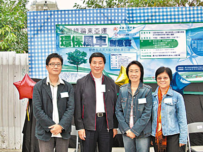 ■認為社區參與十分重要的鄭炳鴻,與黃大仙區議會主席李德康(左二)、啟德發展民間聯席召集人陳婉嫻(右二)及九龍社團聯會黃大仙地區委員會主任吳慧英保持聯絡。