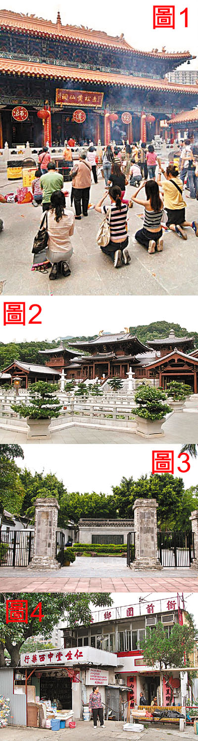 啟德河可連接歷史、宗教及文化景點,包括黃大仙廟(圖1)、志蓮淨苑(圖2)、九龍寨城公園(圖3)和衙前圍村(圖4)。