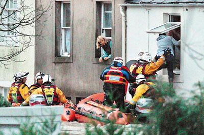 英國國家氣象局19日發布洪水警報,稱英格蘭北部地區、華亞士西北部和蘇格蘭西部地區會遭受洪水襲擊,目前已有200多人被轉移至安全地帶。當局已出動多架皇家空軍直升機參與搜救。首相白高敦表示,會向災民提供一切協助。 ■ politics.co.uk/新華社