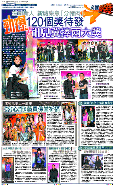 新城知訊台台長朱明銳透露,今年勁爆仍會大約頒發120個獎項,即使外間指是「分豬肉」也不會介意,畢竟現今樂壇相當沉寂,是應該去多給新人予以鼓勵,不會去整死歌手。談到過去仍在金牌大風時的古巨基與新城交惡,現他轉投英皇,朱明銳坦言新城現有播基仔的歌,不過論成績應是陳奕迅及容祖兒較佔優,但最多冠軍歌的倒是張敬軒。