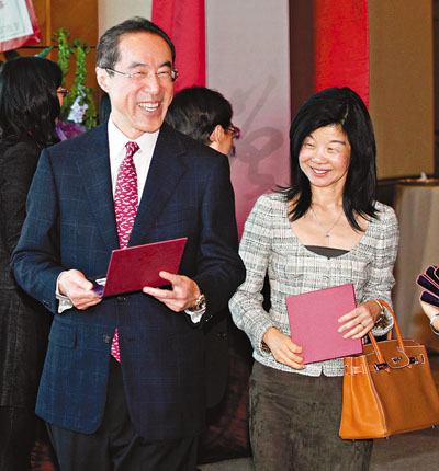 在曾主席的婚禮上,不少獲邀嘉賓亦是攜眷出席,包括特首曾蔭權伉儷及政務司司長唐英年伉儷,而黨友陳克勤亦帶同女友出席。分享起夫妻相處之道,唐司長笑說,曾主席當然要盡量幫曾太做家務,但最重要的秘訣是「聽晒老婆話」。而曾主席於儀式上大唱情歌,大受好評,唐太亦說被曾主席的歌聲感動了,又笑說,從來沒有聽過唐司長唱歌。隨後被問到晚上會否唱歌予太太聽,唐司長說:「你點知我唔係晚晚隊葚怑情]唱)。」■本報記者 鄭治祖