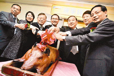 港區全國人大代表葉國謙、中西區區議會主席陳特楚、運輸及房屋局常任秘書長陳鎮源等昨日為陳學鋒的新辦事處主持揭幕儀式,陳學鋒的家人亦有到場支持。