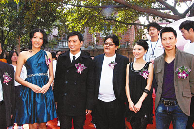 ■《葉問前傳》的幾位主角:杜宇航(右起)、馬賽、林雪、樊少皇等出席開機儀式。 敖敏輝 攝