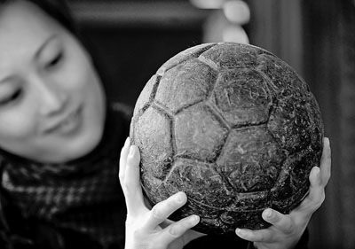 ■雲南省普洱市近日舉辦茶產品環保包裝及造型設計展示會,各種新型茶產品在展示會亮相。圖為一個製作耗時一年、重6.3公斤的足球形普洱茶。新華社