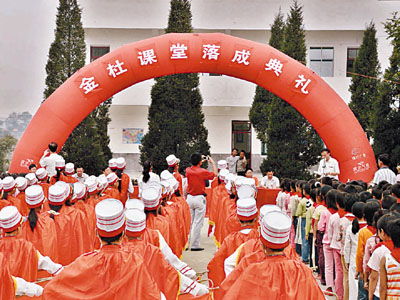 ■2007年9月10日,金杜捐建的江西永新高川完全小學金杜課堂正式落成,學校舉行了落成慶典。