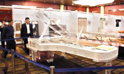 【本報訊】在北京奧運開幕式上給人留下深刻印象的水晶鋼琴現身拍賣場,並以2,200萬元人民幣的價格成交。郎朗演奏使用的水晶鋼琴,由北京星海鋼琴集團公司設計製作。所有外殼部分通體採用高硬度、高透明度的壓克力材料製作,鋼琴的張弦系統、擎弦機系統、琴鍵部分等,都可以透過水晶外殼一目了然。