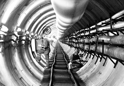 ■今年10月,於江西瑞昌,施工人員在西氣東輸二線工程長江盾構隧道中檢查線路。 資料圖片