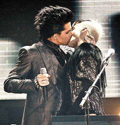 ■Adam Lambert(左)這一吻惹起軒然大波。 美聯社