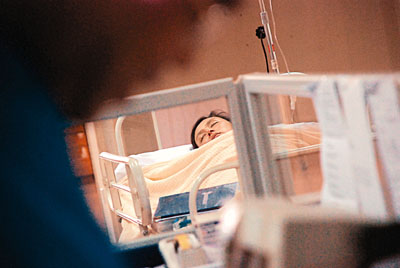 ■胡靜躺在護理室鼻子通紅、面容憔悴甚是可憐。 中新社