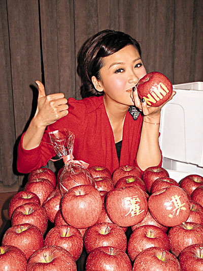 周麗淇(Niki)數月前於日本購買了一棵蘋果樹,現在終於收成了,共有100個「幸福之k」於上星期新鮮空運到港,Niki笑說這是今年最幸福的聖誕禮物。Niki打開盒子的一刻真的很驚喜,沒想過他們會在其中4個蘋果上印了Niki的中文及英文名,他們真的好有心思,令Niki唔捨得食,她說:「希望每一個收到蘋果的朋友及家人都會感受到這份幸福,有機會的話希望可以再去探望這棵蘋果樹。」