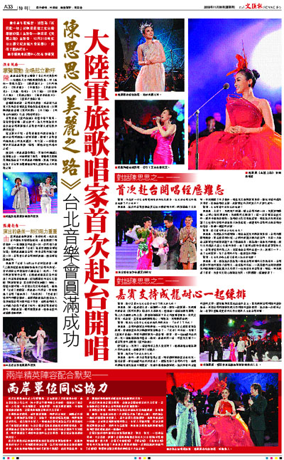 著名青年歌唱家、被譽為「新民歌一姐」的陳思思首次在台灣舉辦的個人音樂會—陳思思《美麗之路》音樂會,10月31日晚在台北國父紀念館大會堂舉行,獲得了圓滿成功。