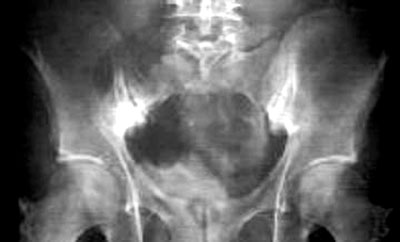 ■在X光片之下,兩邊的胝骨關節同樣出現纖維化。
