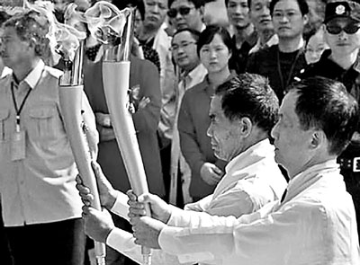 ■「中國電力機車之父」劉友梅和71歲高齡的全國特級教師馬安健共同點燃祭祀聖火。