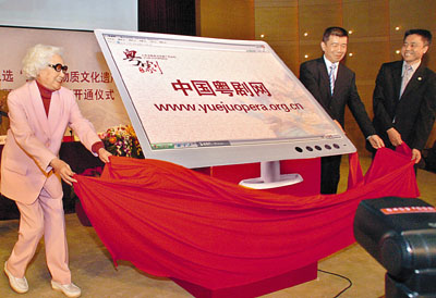 【本報廣東新聞中心實習記者沙飛廣州電】28日上午,慶祝粵劇入選「人類非物質文化遺產代表作名錄」新聞通報會暨「中國粵劇網」開通儀式在廣州紅線女藝術中心舉行,粵劇界知名人士和粵劇研究專家以及粵劇院團有關人員近百人參加,其中著名老藝術家紅線女親自為「中國粵劇網」揭幕。