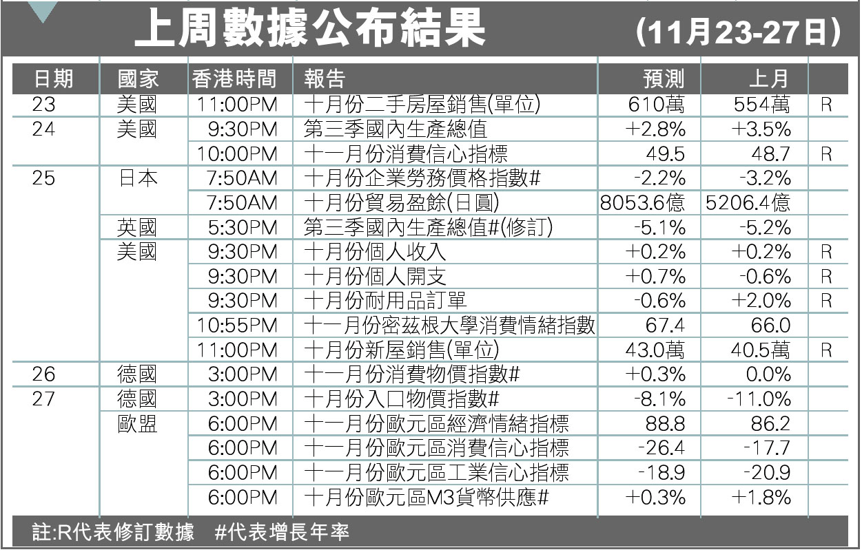 上周數據公布結果(11月23-27日) (2009-11-30) (圖)