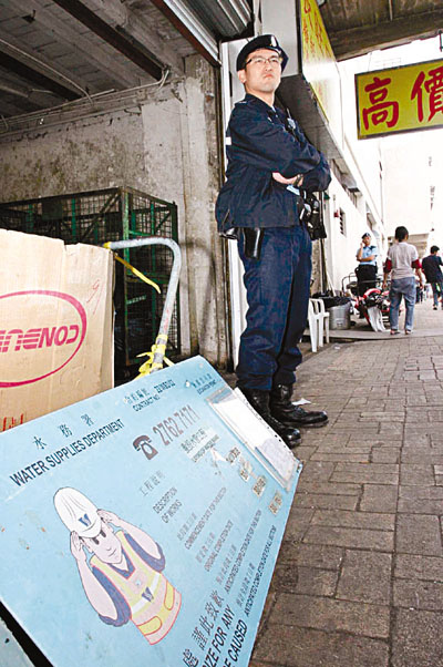 ■警方在涉案回收店檢獲水務署的工程指示牌。