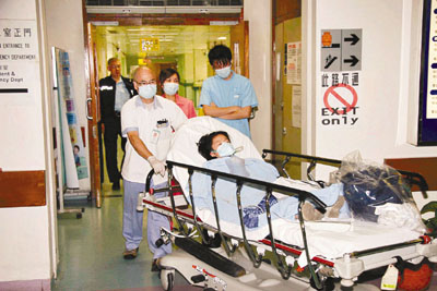 ■母失常縱火期間及時致電父親求救的7歲醒目女送院。 鄺福強 攝