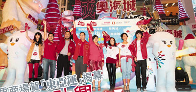 【本報訊】(記者 焯羚)香港2009東亞運動會開幕禮昨晚在維港舉行,這是香港有史以來舉行最盛大的國際體育盛事,值得香港人高興。為迎接12.5體壇盛事揭幕,除了政府主辦的大型開幕禮外,在港九新界的大型商場亦有迎東亞運動會的活動,請來歌手藝人表演助興,將迎東亞運熱情升溫。