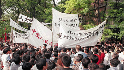 ■北約當年炸毀中國駐南斯拉夫大使館後,激起中國學生的愛國情緒,紛紛上街抗議。 資料圖片