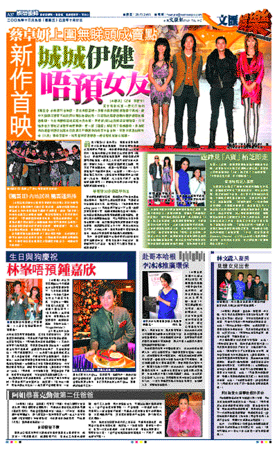 前晚《風雲II》首映禮上,城城全身黑色型仔打扮到場表現風騷,與任達華的黑皮衣互相輝映鬥型格,相反鄭伊健西裝look比較保守。城城和伊健之前到過各地巡迴宣傳《風雲II》,伊健病完到城城尾程病,伊健否認將病菌傳染給城城。談到二人前晚可有偕女友來睇戲?伊健大方說:「她(蒙嘉慧)要開工拍劇,我只請了男性朋友來,都是一些舊戰友。」當問到城城不叫熊黛林到來?他答謂:「我一心一意全程工作行先。(但還有時間跟熊黛林去打邊爐?)咪住先,我想講,私人生活不講了,全程做好電影宣傳!」伊健此時也幫口表示這場合確實講電影較適合。