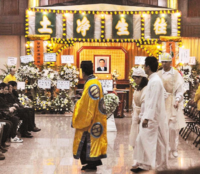 一班《畢打》劇演員送「老闆」最後一程,昨日停廠一天以作悼念,劇中演員黎耀祥、毛舜筠、陳茵媺、鄭欣宜、江欣燕、金燕玲、朱慧敏、王祖藍及黃德斌等一早便到達靈堂,前來送別「大閆生」。昨日天氣寒涼,天下著細雨令各人倍覺哀傷。