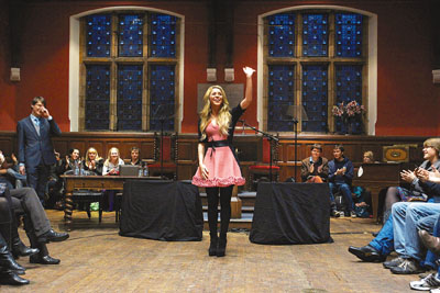 哥倫比亞女歌手Shakira(圖中)不但唱得,還走進英國牛津大學校園與400名師生「講書」。原來Shakira是得到大學的邀請,與大家一同分享她的演唱事業和慈善事業。由舞台走進校園,Shakira坦言有點緊張,在受到學生的熱烈歡迎下,Shakira不停地向他們揮手,表示好像回到校園,已成為他們其中的一員。■文︰曼迪/圖︰路透社